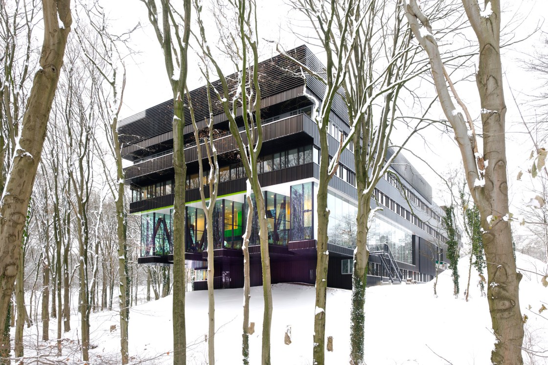 Wat deed de commissie de prijs aan ‘Groot Klimmendaal’ toekennen? –De in 2009 gerealiseerde kliniek, is een voorbeeld van een gebouw voor de gezondheidszorg waarbij de verblijfskwaliteit even belangrijk is als hygiëne, efficiëntie en de integratie van technische snufjes. Dit vertaalt zich in het feit dat het gebouw eigenlijk niet als een kliniek aanvoelt.