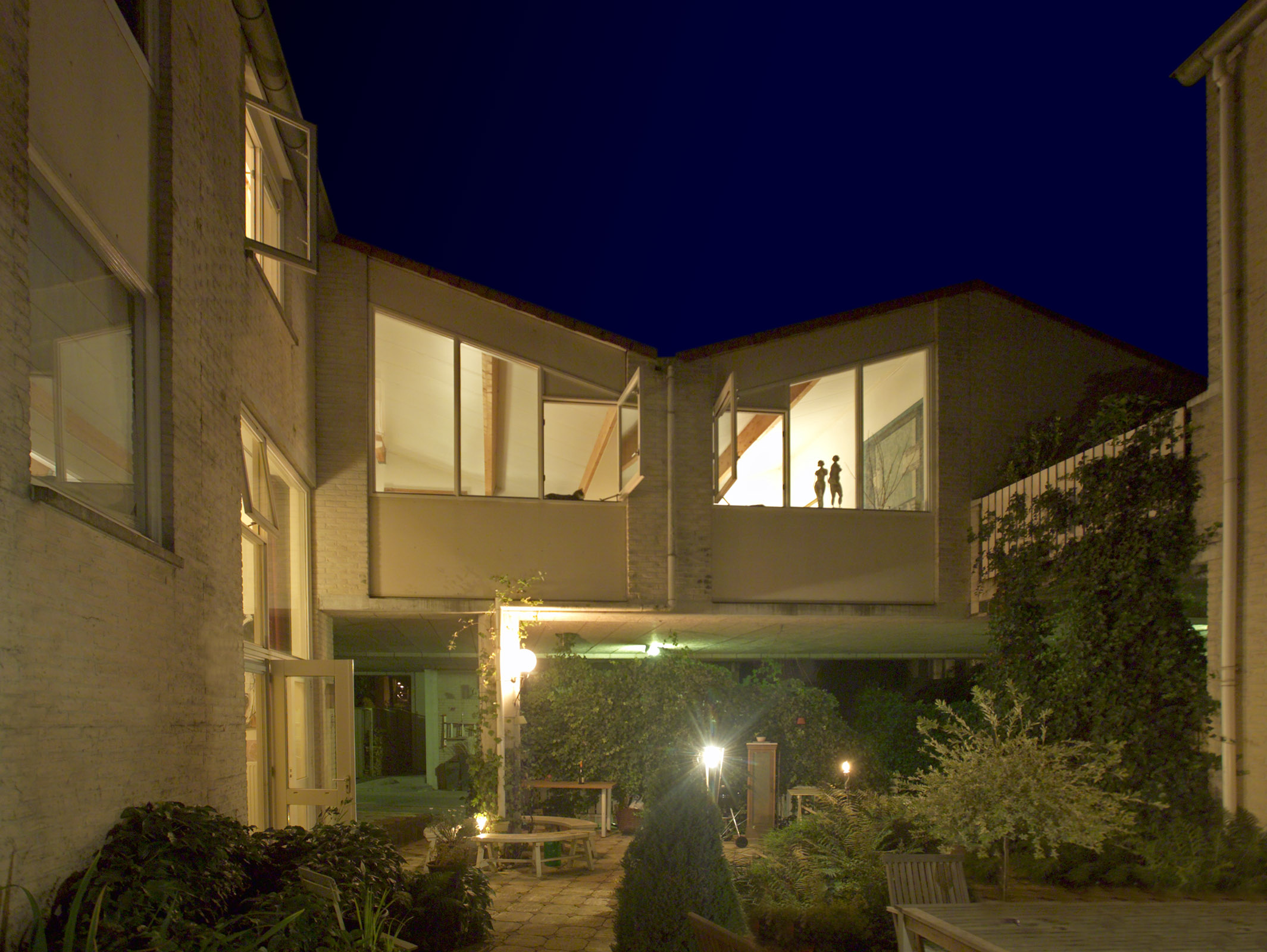 Vooral deze woonkamer, eigenlijk naast de rest van het huis is spectaculair. Blom heeft als het ware de woonkamer uit een conventioneel huis geknipt en weer langszij, zwevend boven de toegangsstraat, vastgeplakt. Het levert een uitzonderlijk ruimtelijke, slechts door een kleine trap onderbroken woonverdieping op. Echt een vondst.