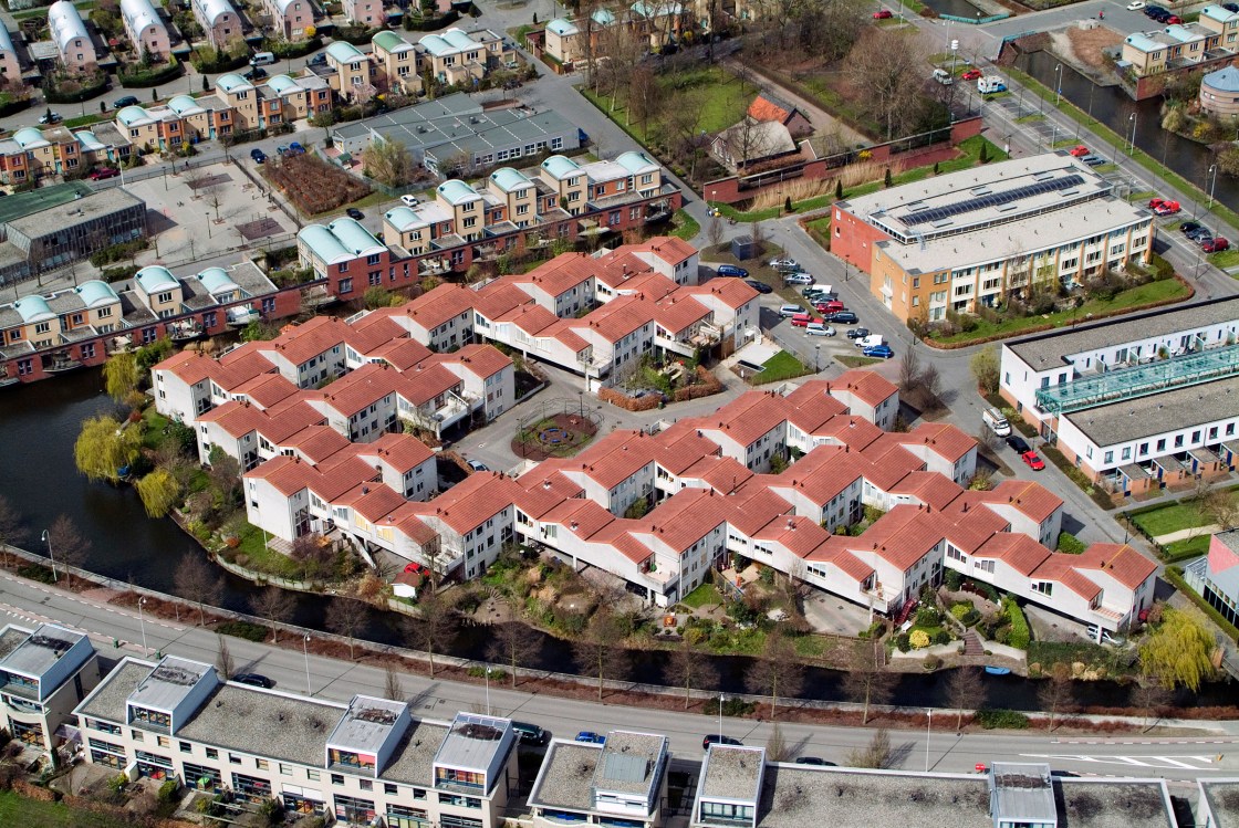 Bij het betreden van de wijk overvalt een gevoel van knusheid. De drie verdiepingen hoge huizen zijn als een kring geordend rond een binnenterrein dat doet denken aan een dorpsbrink. Omdat alle huizen met elkaar zijn versmolten is het niet duidelijk waar het ene huis start en het andere stopt. Het versterkt het gevoel een community te betreden.