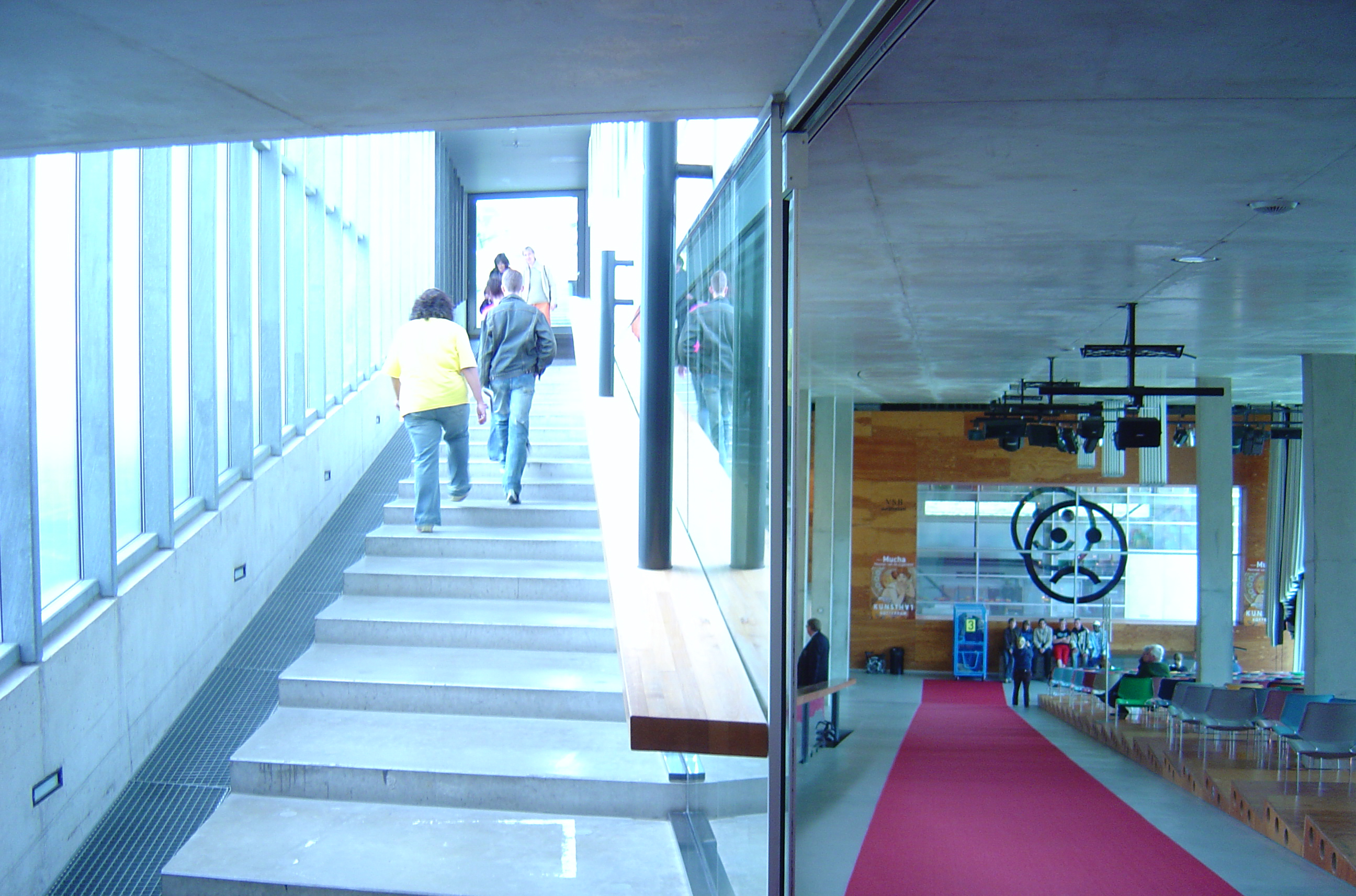 Aangevuld met extra tentoonstellingszalen boven het auditorium, een klein zijvolume voor de staf en een restaurant onder het auditorium, is de Kunsthal als een snoer van verschillende tentoonstellingsruimtes met wat losse eindjes, even simpel als ingewikkeld.