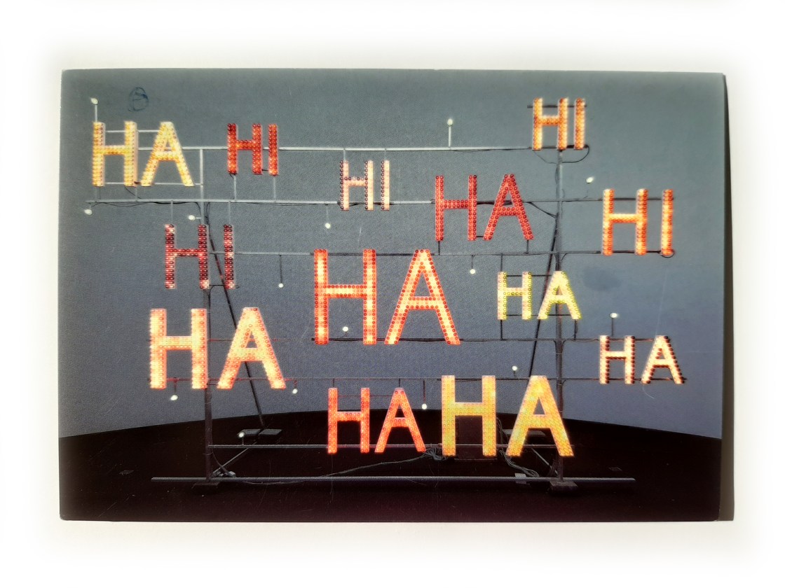 Deze installatie van John Körmeling heb ik vaak in aangeschoten toestand gezien, nadat ik als student de kroegen van het Eindhovense Stratumseind was uitgerold. Het is een leuk werk: om beurten lichten de verschillende ‘HA’s en ‘HI’s op, alsof er een eindeloze grap wordt verteld. Het stond achter een grote glasgevel van het Van Abbemuseum, bij dat Stratumseind om de hoek.