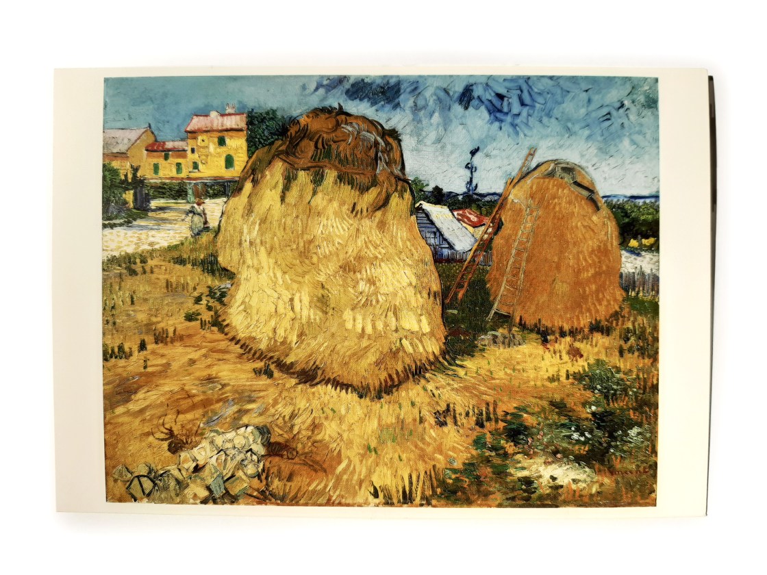 Van die boeren mochten wij op het land spelen. Ik herinner me dat we verstoppertje speelden tussen het mais en riddertje op de net geoogste strobalen. Anders dan op dit schilderij van Vincent van Gogh waren dat vierkante blokken, die soms wel een meter of tien hoog werden opgestapeld, een perfect kasteel.