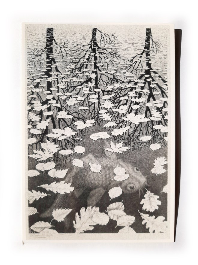 Kunstwerk: M.C. Escher, Drie werelden, 1955
