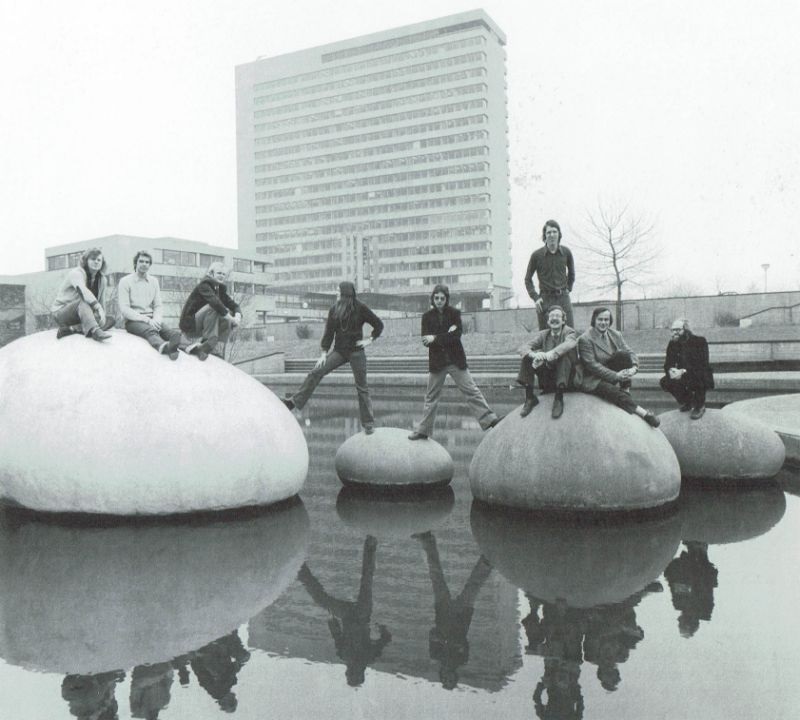 Maar ik vind ze zo mooi dat ik er toch aandacht aan geef. Het waren immers zeer geliefde objecten, ideaal als hangplek voor studenten. Vanwege de vorm en plaatsing waren ze een perfecte tegenhanger van het hoekige, geometrische universiteitscomplex, dat ongeveer gelijktijdig met de plaatsing van het kunstwerk in 1970 in gebruik werd genomen.