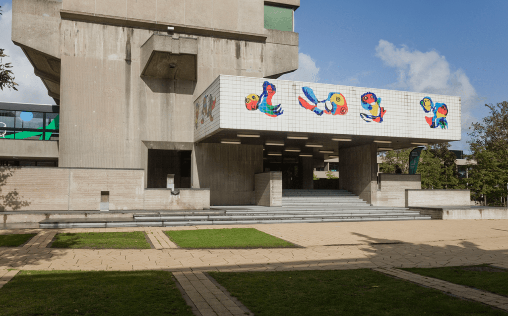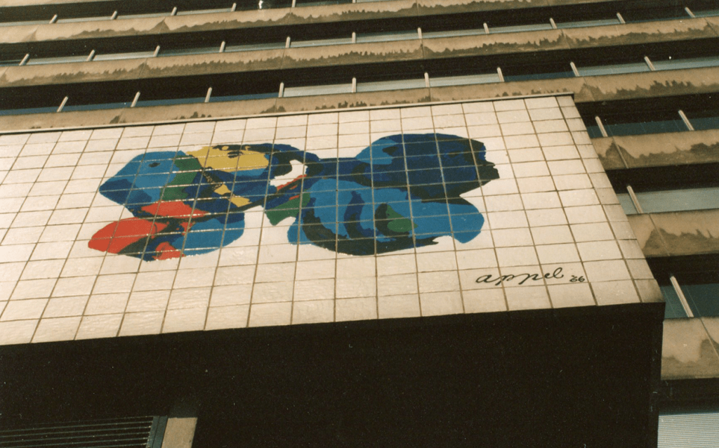 Studenten en medewerkers van onze universiteit hadden het voorrecht om dagelijks naar een Karel Appel te kijken. Want diens tegeltableau sierde al vanaf de opening de luifel boven de ingang van het Tinbergen-gebouw. Alleen, het is even niet meer zichtbaar, want tot 2027 wordt het gerenoveerd. Maar omdat het zo’n bijzonder en beeldbepalend kunstwerk is, schrijf ik er toch over.