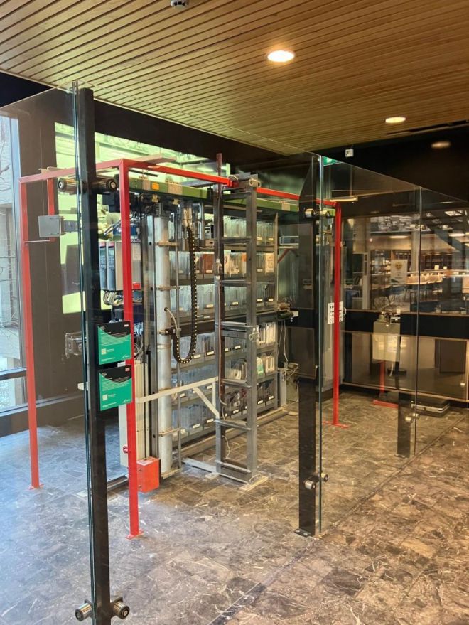 Dankzij deze robot konden de 250.000 boeken van de bibliotheek op minimale ruimte in een kelder worden opgeslagen, en toch kon elk boek binnen enkele minuten worden bezorgd bij de balie. Vanuit de hele wereld kwam men kijken. Het systeem werd de voorloper van vele automatische bezorgrobots in warehouses.